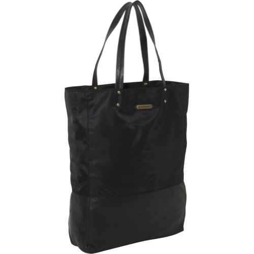 Sturdy nylon meets rich leather in this roomy carryall. Shoulder straps, 8inch drop One inside zip pocket Nylon lining 11inch W X 17inch H X 3inch D Imported